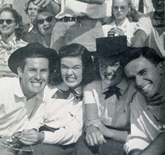 The fabulous Martha Cartwright, 1949’s Sweetheart of the University of Texas, chats with poor-man’s Gregory Peck, clearly not ready for this jelly. Woman at right seems to concur. So not ready for that jelly.