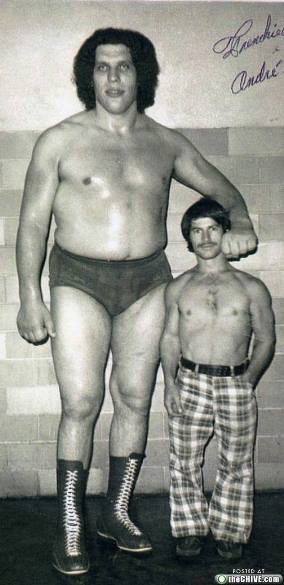 I remember him as a wrestler in the late 70s and early 80s and later in some movies. Now, wrestling may be pretty fake but I bet every opponent of his stopped and considered what would happen if Andre really did get mad. Some sumo wrestlers get heavier than Andre but add 7’4″ of height and that’s got to be scary.
