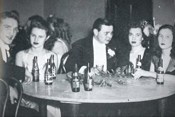 That is quite the neck corsage that chap is sporting, isn’t it? Is there even a word for a neck corsage? These images of people dressed up in their gladrags while drinking straight from the neck of a bottle reminds me of my mother telling me I looked “unfeminine” because I was drinking from a pint glass. Far better, in her opinion, for me to have two half pint glasses in front of me instead. Bonkers.