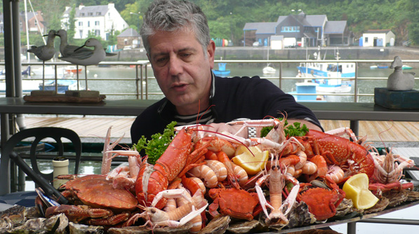 Man, I remember that episode- he really enjoyed his seafood feast !