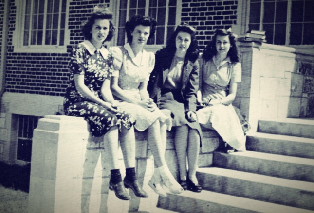 Here’s another pic of students sitting near the steps. They have all chosen to keep their knees together, like ladies do.