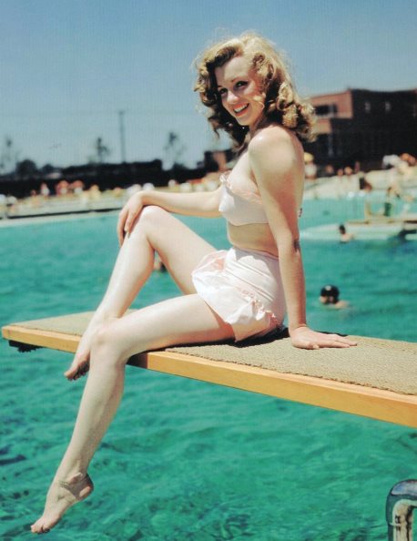 Those are some great pics. especially the one of M.M. She is so pale it is amazing that she didn’t burst into flame in the sun. You are right about Carolyn Jones. Not only does she look old but her swim suit looks like granny’s undies.