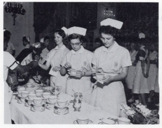 I think they were cool and let a patient easily spot a nurse. What I read said they were phased out in the 80s for scrubs.