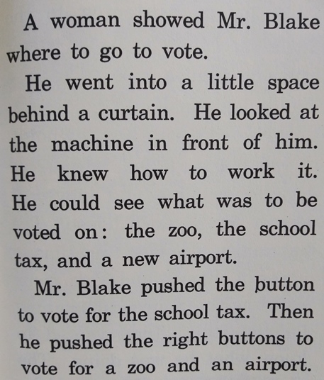We had machines that you walked in a pushed a button down. When you pushed down all the ones you wanted to vote for you pulled a lever that opened a curtain and it also recorded your votes.