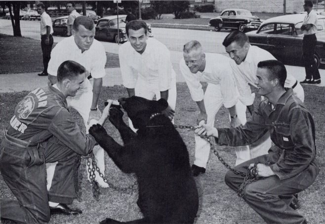 Easy There ’61 Round Up Four cheerleaders and two bear trainers at Baylor University enjoy the afternoon with their mascot. Share this: Click to share on X (Opens in new window) X Click to share on Facebook (Opens in new window) Facebook Like Loading... Related