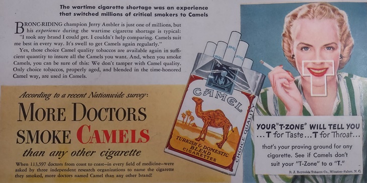 Our collective perception of cigarettes has changed so much since this ad was published, when doctors both smoked and endorsed cigarettes.