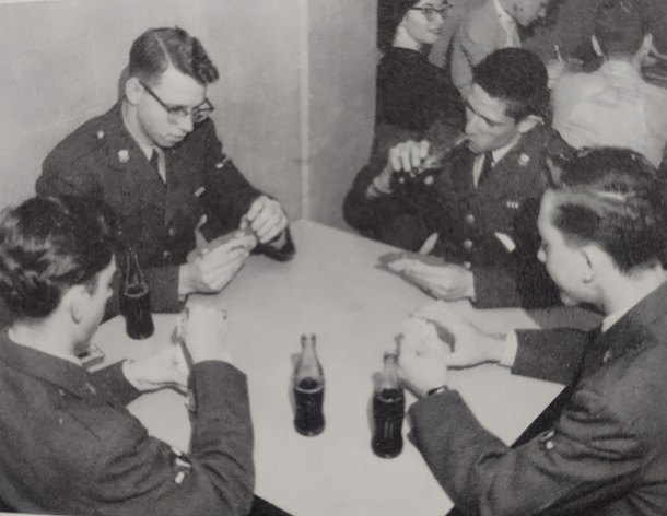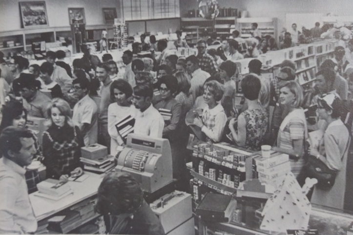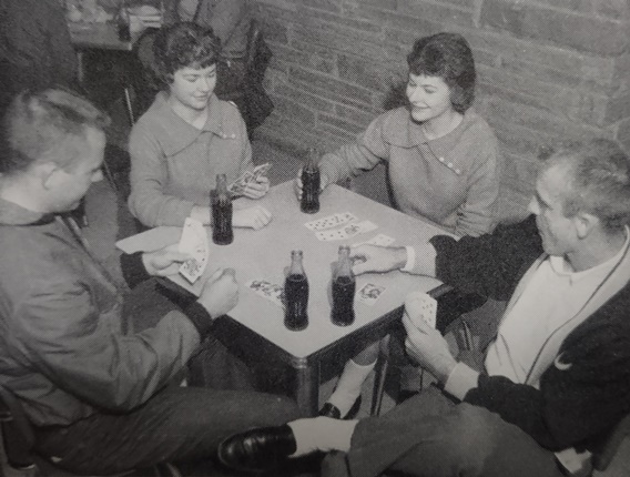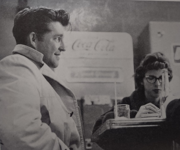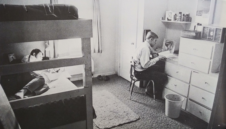I don’t imagine the two young men at Southwest Missouri State College had ever been in 109 temps. They look quite comfortable. To be honest, the entire image could be a current ad campaign, though it was 56 years ago. Those Converse, the skinny jeans, the sockless loafers and plaid hat, even the legs of the mid-century chair–it all works in 2023.
