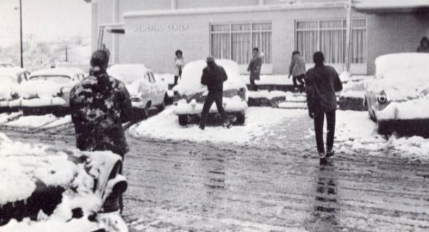 The first snow of the year fell on February 20, 1964, and these New Mexicans were happy to have it. Well, at least the girls seem to be enjoying it.