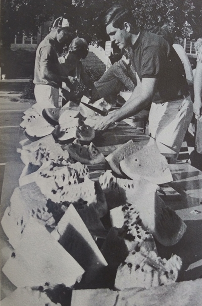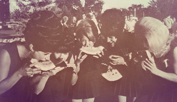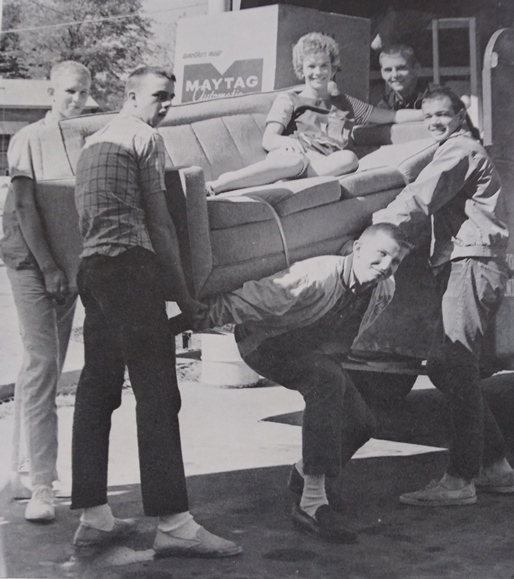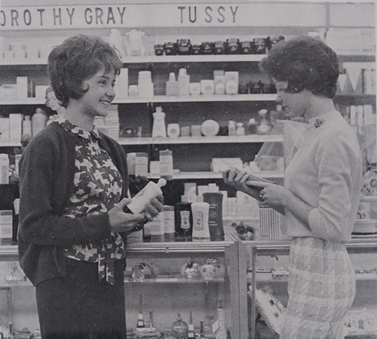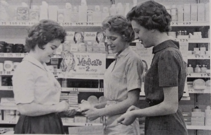 Sometimes you scroll through a crispy, fresh new yearbook and can’t help but do a doubletake. That’s exactly what I did with this shot this morning. I thought Medicare was a nationwide health insurance program provided for Boomers and the last bit of the Greatest Generation. Evidently, there was another, less complicated Medicare littering drug store shelves like Atherton’s here, during the year Marilyn Monroe was killed by the Mafia committed suicide. Mary, Jackie, and Kaye were in the know about problematic pimples–and Tussy was the answer.