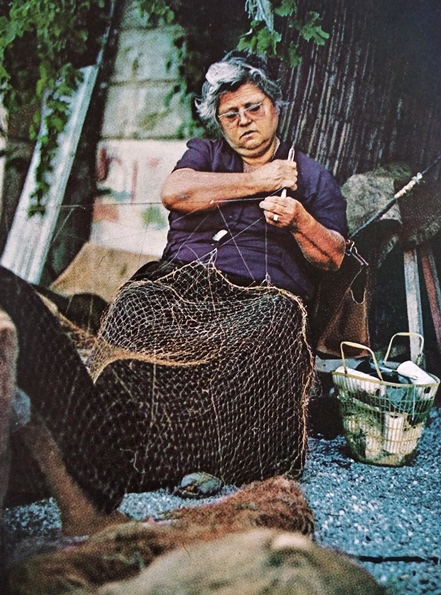 You might think those miners would give their right pinky toe to trade places with this next lady, spending all day in the sea air, mending the nets of her fishermen husband, but it’s not all it’s cracked up to be. It exacerbates (if not induces) rheumatoid arthritis, offers the agreeable company of no one, save an errant and greedy seagull, has zero promotion, and requires solid maintenance of sturdy prescription readers.