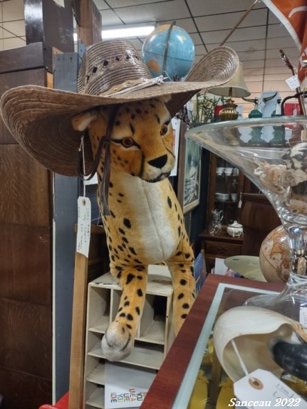 A bouffanted, bespectacled lady side-eyed us soon after we entered the Austin Antique Mall. She rocked a sombrero better than a nearby cheetah rocked his cowboy hat.
