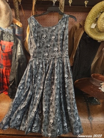 Other finds proved wearable, like this skull dress and peacock boots (perhaps not worn together).