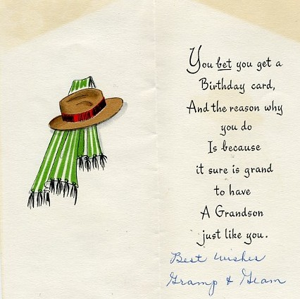 I don’t know Gramp and Gram from Adam, but I bet they were fine grandparents. Who wouldn’t feel loved, receiving one of these, assuming kids actually READ them?
