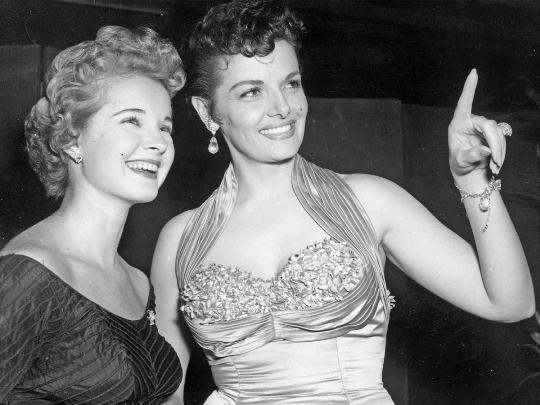In this shot, she and Jane Russell talk smack about the peons at Paramount.