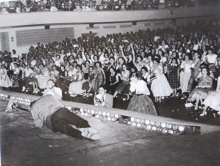 What is going on here? No one is rushing the stage. Folks are in their seats. No Zippos in the air. No bra straps showing. Petticoats are full, waists cinched nicely. It’s a remarkable expression of containment and decorum, when you know full well those girls are about to. lose. their. minds.