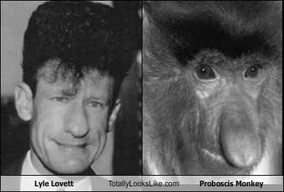 Now pretend I’m Oprah Winfrey, narrating the Discovery Channel’s “Life” series, giving you the 411 on all animals as if she created them herself, like she’s some Miss Know-It-All Omniscient Oprah, Queen of All That Is And Will Be. Sorry. Now here goes in my alto Winfrey voice: The males use their bulbous, pendulous noses to attract females. If that seems far-fetched, consider Lyle Lovett and Julia Roberts. (I still love you, Lyle.)