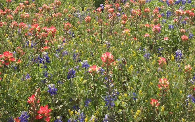 I pass piles of pink primroses and Indian paintbrushes and think about how those are some of the first memories of childhood in Texas. Bluebonnets and Indian blankets lining the roads, scrubby mesquite trees and acres of live oaks. Nobody could argue that an oak tree is prettier than a pine or a cottonwood. An oak tree would never win the pageant. But when you grow up here, the oak tree is like that unattractive aunt. She’s not much to look at, but she’s family.
