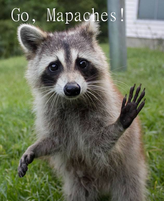 Today’s Spanish word of the day is mapache. Mapache. You know, like Apache Indians. It’s totally fun to say. It means raccoon. Wouldn’t mapaches be a great mascot for a team? They are certainly more menacing than Delta State University’s Fighting Okra.
