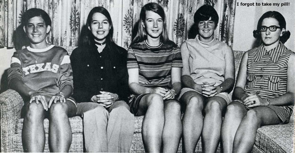 In the next trio of girls, Cindy Nolen is the bowheaded gal having the time of her life.