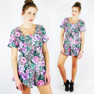 Webster defines a romper as “a jumpsuit for infants.” These rompers look like onesies to me. The Free Dictionary describes a romper as “a loosely fitted, one-piece garment having short bloomers that is worn especially by small children for play.” Neither of these definitions include garments for grown people. And Webster should know; he’s been defining for a while now. But I definitely remember seeing fashionable gals wearing rompers a couple decades back. Check out this animal and floral print. Looks like someone borrowed grandma’s negligee…