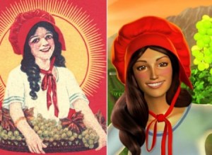I think we can all agree the 2006 Sun Maid Raisin girl makeover was an epic failure. I prefer the happy Gilda Radner to this creepy CGI no-indentation-in-her-upper-lip-Julia-Roberts-smile Little Red Riding Hood. The cheerful immigrant girl was clearly up at the crack of dawn to pick grapes, but I doubt the “new and improved” Raisin Barbie would have stumbled home yet. And something about her armpit bothers me. And finally…