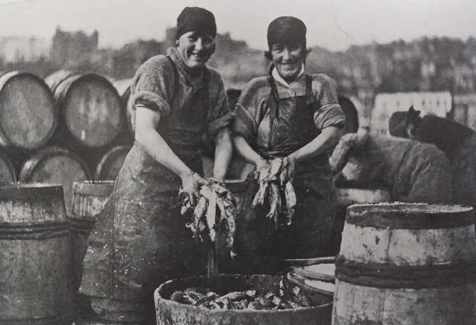 Kipper are actually herring, same as the ones held by the “Scotch lassies” above. These girls numbered among the many Scots who came to work by the hundreds to Whitby, a seaside town in North Yorkshire, England. During the herring season of 1932, folks literally rolled up their sleeves, got their hands dirty, and dug in. Might not be as easy as shooting fish in a barrel, but it’s honest work.