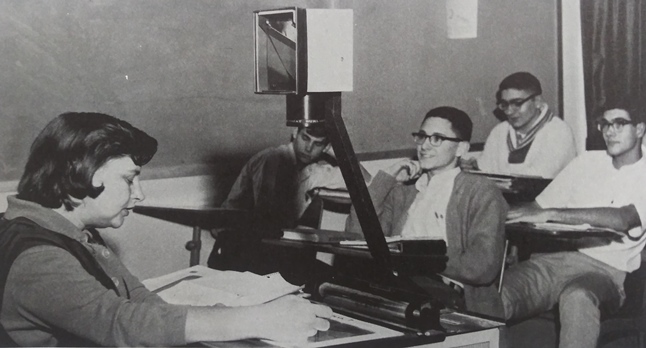 Ah, 1965. Overhead projectors and horn-rimmed (NOT “horn rim”) glasses graced every classroom. And even then, the rims were not made of actual horn or tortoiseshell, but of plastic. All the better to see you with, my dear.