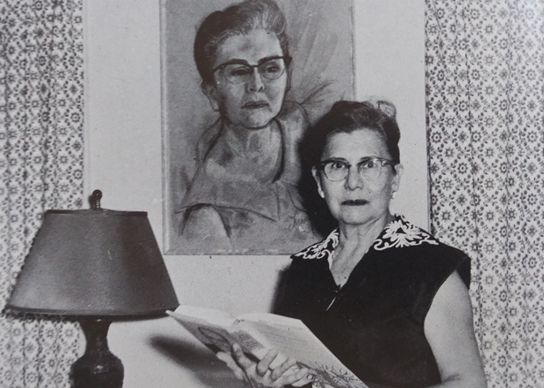 Miss Eloise Roach, high school French teacher, holds her translation of “Three Hundred Poems” by Juan Ramon Jimenez, who does not sound French at all.