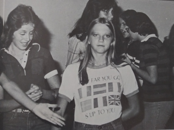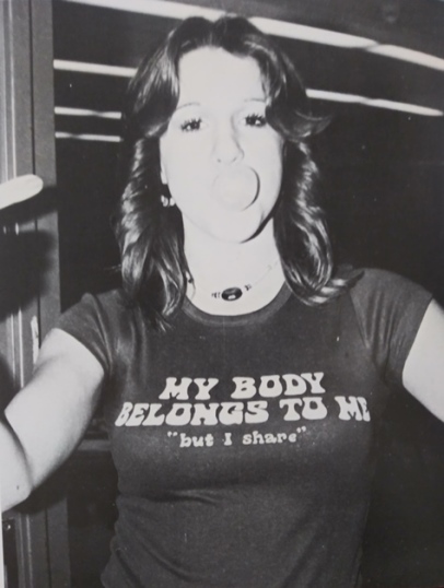 Back in 1978, this was seen as a clever tee, cute enough to make it into the yearbook. High schools would undoubtedly send this minor home in today’s #metoo era.