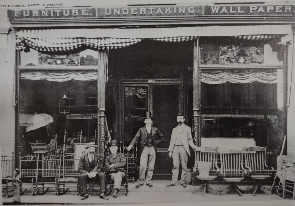 Sounds odd that Rau’s store in Beloit, Wisconsin would specialize in such varied options until you realize the cabinet maker also had a talent for constructing coffins.