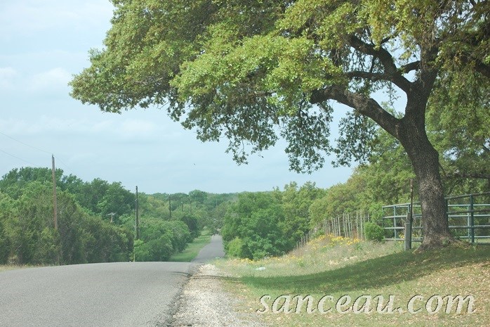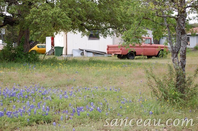 As I continued down the county road, I passed these signs. The bluebonnets were still hanging on. They usually disappear by tax day, April 15.