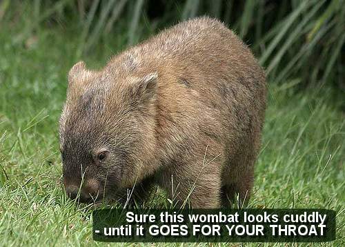 Then I found out wombats viciously maul people, probably because it is in their Australian blood to eliminate humans. What is up with that? But then I saw this picture, and I forgave them. I figured they must have been provoked. He’s clearly not ripping her face off.