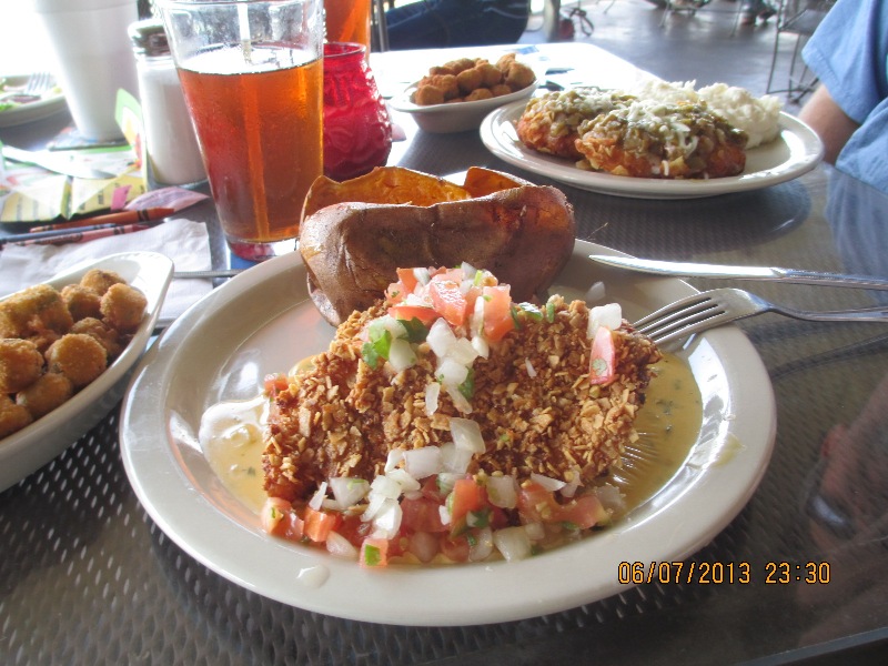 We visited The Oasis this past weekend in central Texas and enjoyed a nice meal of redfish, grilled veggies, and rice. The Oasis has never (in decades) been known for decent or reasonably-priced food, so this was quite a surprise. And though it was a steamy 104 degrees in the sun, the shaded deck (and surrounding fans) allowed for a comfortable meal.