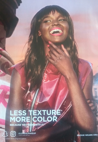 Flipping through the pages of the August 2019 InSTYLE magazine, I recently stumbled across this Loreal ad of two stunning models, Duckie Thot and Luma Grothe. While one could argue that Luma Grothe is a fine funny name in its own right, there is no humor there, save supposing one said her last name as “Gross” with a lisp.