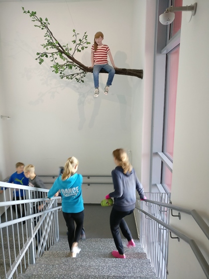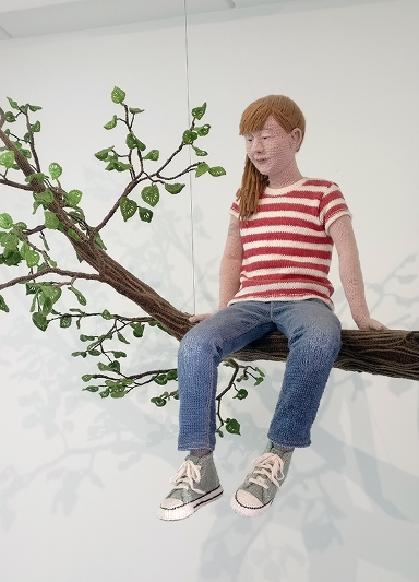 Up Here is a public artwork created by Liisa Hietanen out of crochet. She crochets some amazing life-size work. This one literally sits inside a Hämeenkyrö elementary school in Western Finland. It’s called TÄÄLLÄ YLHÄÄLLÄ (just try it) but students have nicknamed it Mimosa, as it clearly implies champagne and orange juice. I hope these kids are too young to have read A Separate Peace.