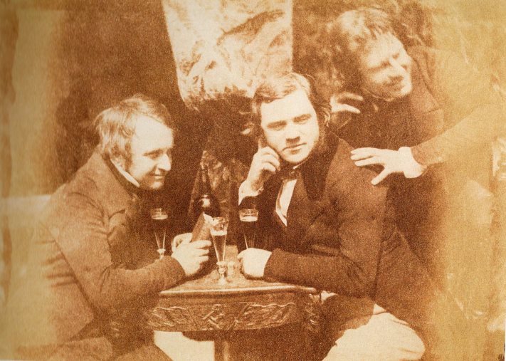 To the right is Scottish photographer David Octavius Hill (including himself in this portrait of merriment). On the left is James Ballantyne, who designed the windows in the House of Lords, and Dr. George Bell smugly sits in the center, one of the founders of the “Ragged Schools” for destitute children. Sláinte!