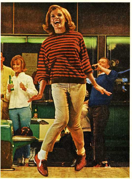 But this ad is such fun. Her sassy response to his implied inquiry (“Actually, I do know how to work the hi-fi, thank you…), the conversation behind closed doors, her poofy braid pony, the Glenn Miller album askew on the wall, his tolerant look (like he should just humor her until the sun goes down and it’s time to trade green soda bottles for brown Hamm’s beer bottles), how his wool sweater looks as scratchy as the throat the ad references, and all the woody orange-yellows! Cheers!