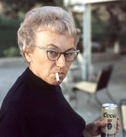 This little-banged Meemaw (I mean her bangs are little!) was only 37 years old, but look how the Camels aged her.