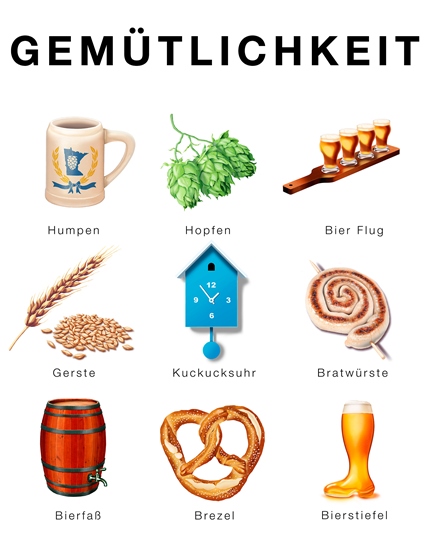 Behance.net defines it as, “A feeling of friendliness and coziness that comes from drinking in a beer garden.” They created this next poster, which you might find helpful, should you choose to add more words to your vocabulary. Perhaps a little humpen and hopfen is in order.