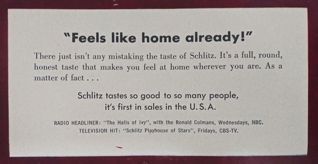 The reputation of Pabst Blue Ribbon in 2022 is more for nostalgia’s sake than for any prestige that it might hold in a world of craft IPAs, ciders, stouts, and porters. Around here, they price It low for hipsters to drink it ironically. But the Tibbetts seem to be enjoying it. And who were they? Well, Lawrence was an opera singer, actor, and radio host. His mustache never suited him, and he evidently drank heavily for years. In fact, he fell in his apartment and hit his head on a table, which proved fatal. I doubt anyone here has ever heard of him. But Laurel and Hardy did.