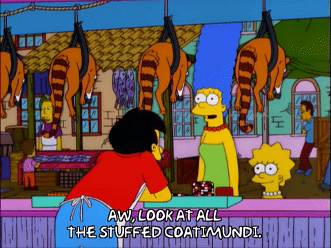 He sure is cute, though. If you purchase one as a pet, just know that Purina won’t work for this guy. Make sure to provide fish and ants, as well as eggs and sugar. Coatis looove sugar. He was not made to eat a vegan diet, so don’t push your agenda on him. And don’t get angry if he comes at you like a spider monkey; it’s in his nature. He can’t transition into a chill sloth or a domestic cat. He’s stuck in the skin he was born in. Don’t try and forcefeed him Zoloft or Latuda or push meditation practices on him to quell his biting tendencies. Believe me, when he sinks his teeth into your skin, he is fully present. Fair warning: he may give in to his bandit ways, and like a coon, pillage your neighbor’s trashcan. Just make sure he doesn’t get caught or he may wind up shot and stuffed. Trespassing is against the law, after all.