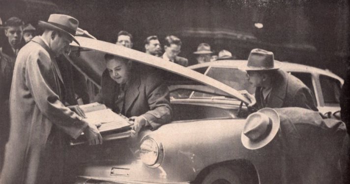 This photo was published exactly four days after the company ceased operations of the Tucker 48. Only 51 cars were ever produced. Among other negative publicity, top newspaper columnist Drew Pearson reported that the car was a fraud because it could not go backward and it went “goose-geese” going down the road.