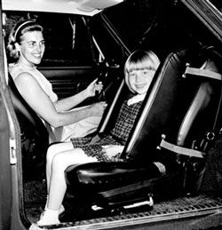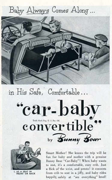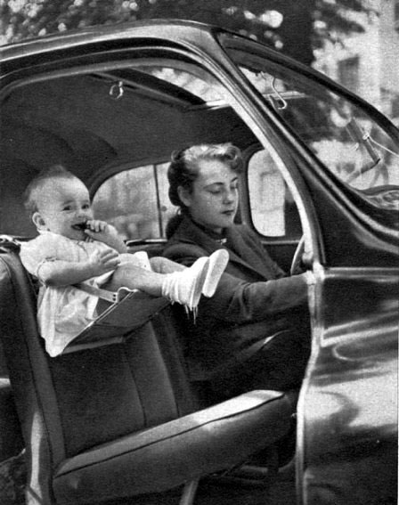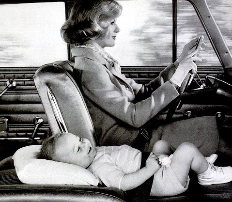 What do you think? Does this look safe for baby? What if Jumpsuit Barbie flings all 105 lbs of her waxed body into him at a hard stop? Would that be a good idea? And won’t Barbie be silently resenting her position, relegated to the back seat, second priority in Ken’s life? That’s got to mess with her psyche. I don’t see it happening, Volvo.