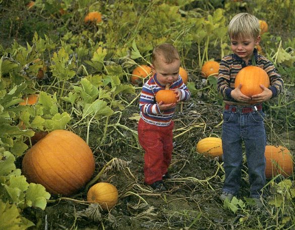 The boys of autumn arrive at the pumpkin patch in Washington State, ready for October!