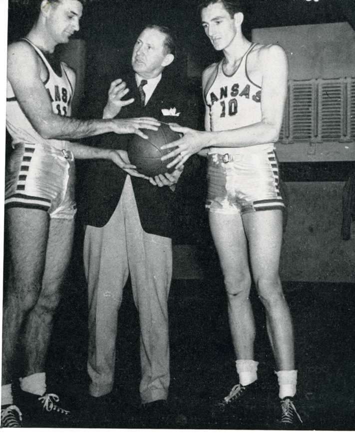 Here, the basketball coach explains why this year’s uniforms were shortened, rendering undergarments completely unnecessary, and thus, saving on material during the war effort.