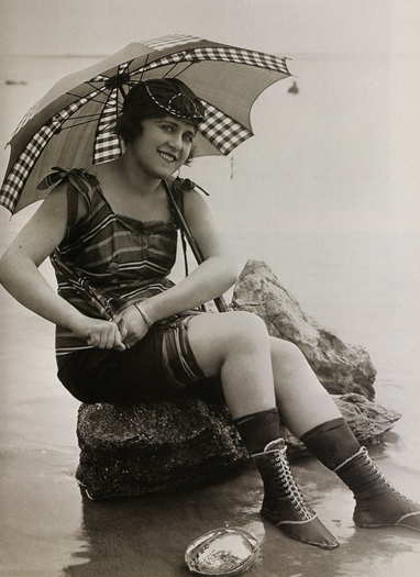 Gingham Parasol & Modest Beachwear 1910