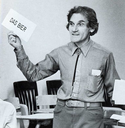 He’s pouring Miller (the champagne of bottled beer) from one presumably cold glass container into another. What was wrong with the bottle? I’ve never understood that. And he’s not even tilting the pint glass to reduce that drastic amount of head. Hold it at at a 45° angle!