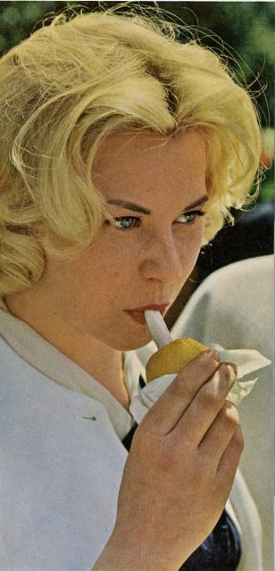 I’ve never seen this pairing in real life, but evidently folks at the Flower Mart in Baltimore’s Mount Vernon Place fancied a peppermint inserted in a lemon as refreshment. I mean, I guess if they ran out of Coke, it makes sense.