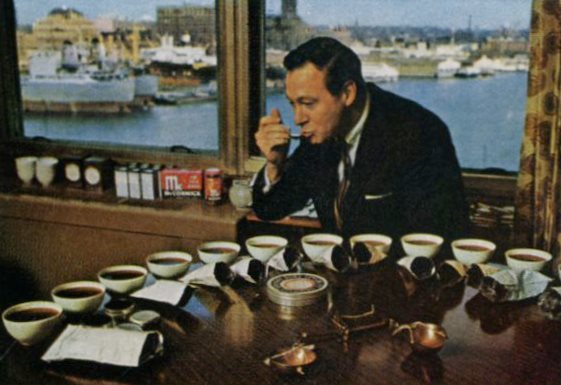 All day long, poor Mr. Hall must sit at his desk, teasipping and deciding which flavor, bouquet, and body combine for an ideal blend of tea. Once his palate is exhausted, he pauses to stare out his huge window that overlooks a busy Baltimore pier, where freighters unload cargo from exotic ports.