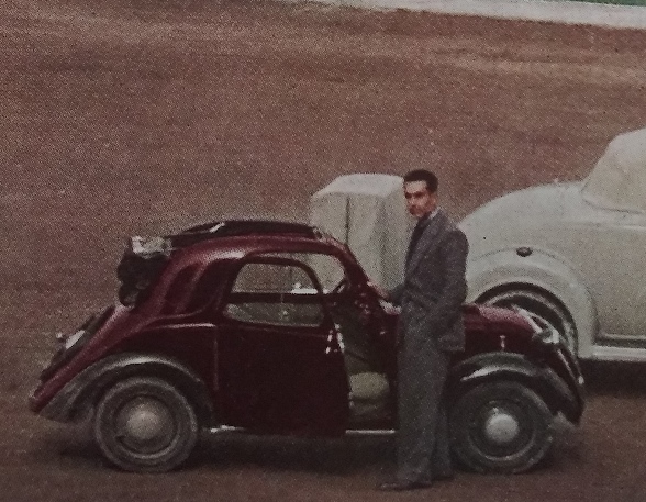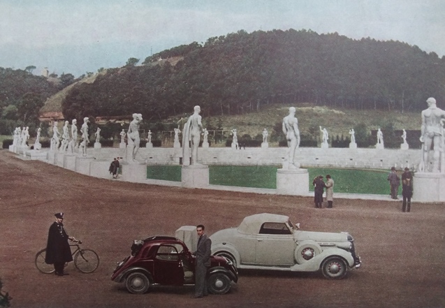 That little red Fiat 500 was a first-year Model A (produced from 1936 to 1948), the smallest car in the world at the time. Italians (like those in this shot in Rome’s Mussolini Stadium) dubbed the midget coupe Topolino (“little mouse” in Italian).